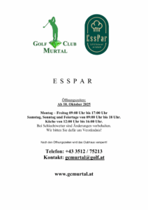 Kontakt: +43 664 / 3949167 oder per Mail an restaurant-esspar@gcmurtal.at